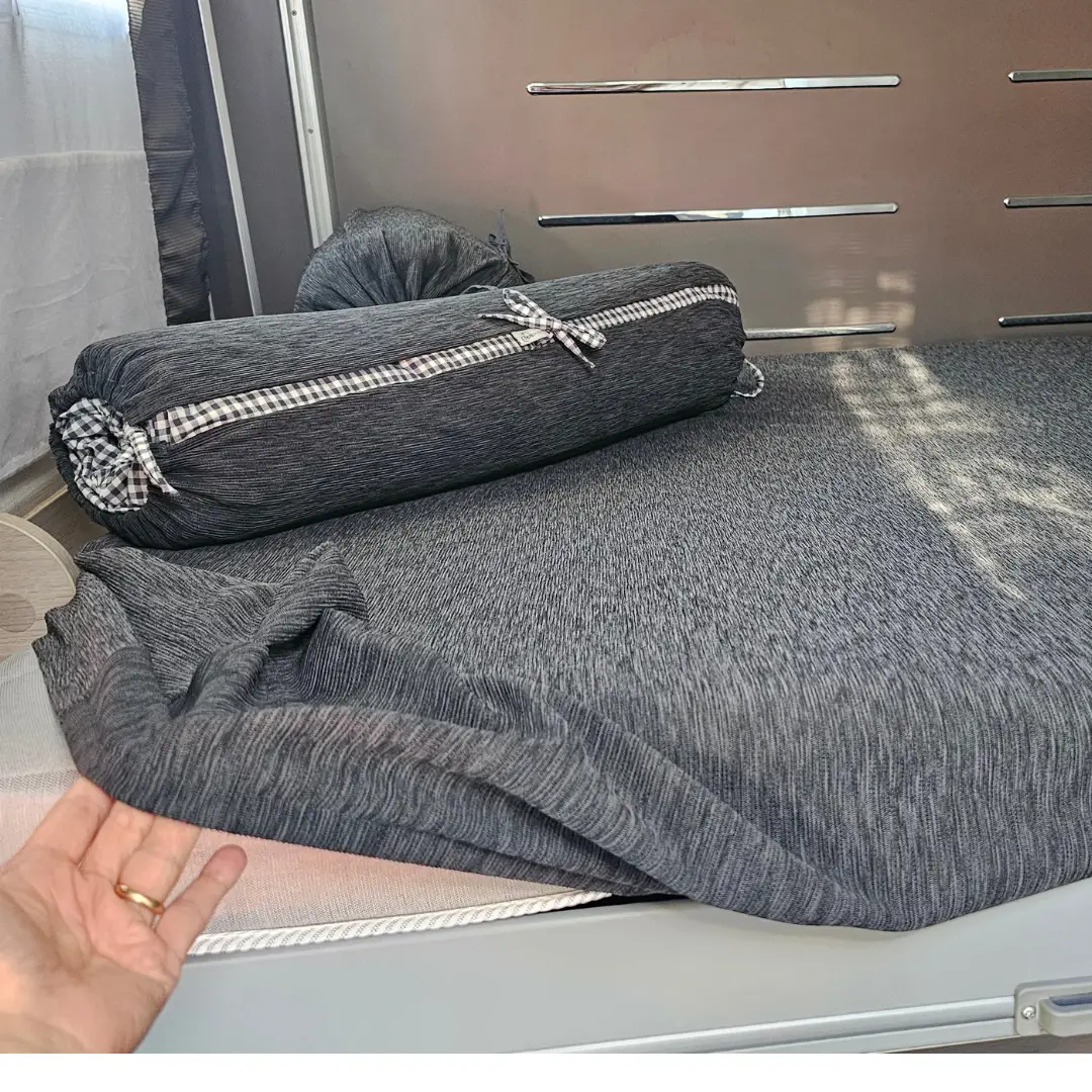 In Camper e in Barca, abbinato al coprimaterasso coordinato (e completamente personalizzabile) dà un tocco di stile unico, per un ambiente sempre impeccabile.